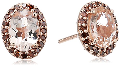 10k Rose Gold Morganite and Cognac Diamond (1/5 cttw ) Halo Oval Stud Earrings