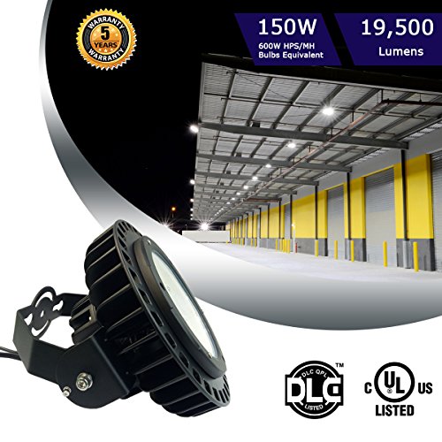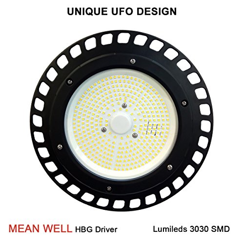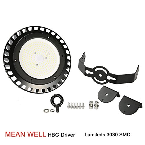 150W UFO LED High Bay Lighting Luxeon SMD 3030 LED MeanWell Driver with Mount Bracket Ultra Efficient 130 Lumens to Watts White Light DLC Certified 5000K Waterproof New Well Don