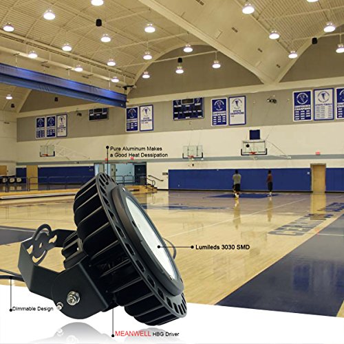 - ✔ Better Designed: New "UFO style" is the latest in LED technology,smaller and lighter.All the housing is made of pure Aluminum and make a good heat dessipation to protect LED chips and driver power.The light can be controlled by 1-10v dimmers, microwave sensor, daylight sensor, ZIGBEE and so on