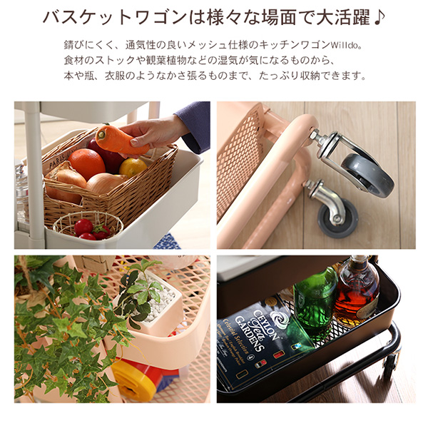 ●バスケットの棚底は通気性のよいメッシュ仕様