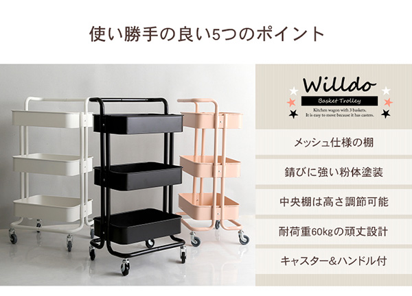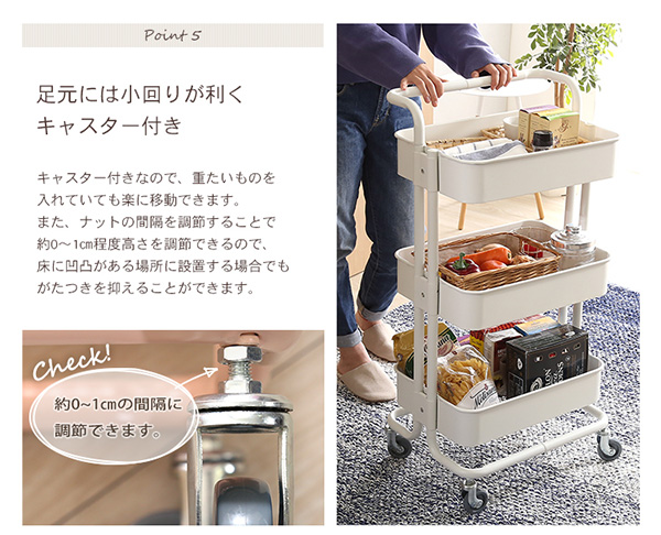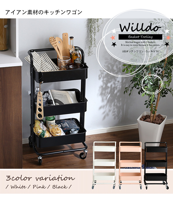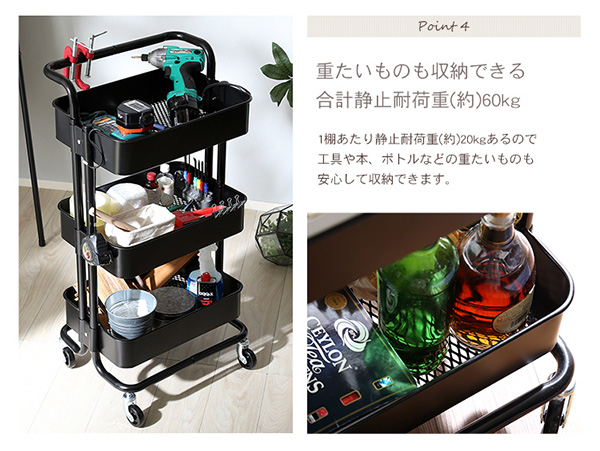 ●粉体塗装で錆に強いアイアン素材の3段キッチンワゴン♪