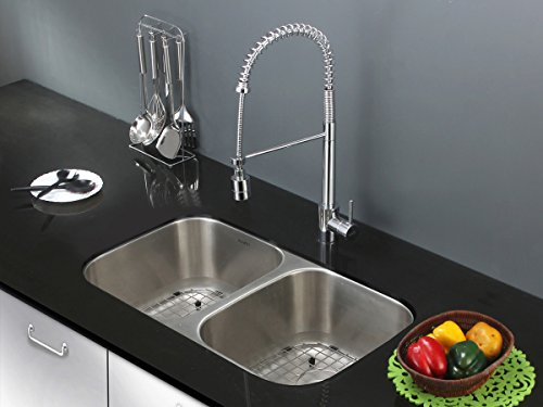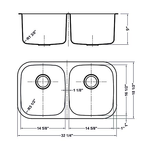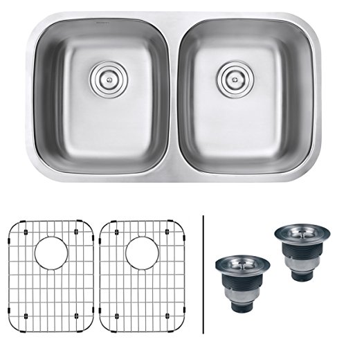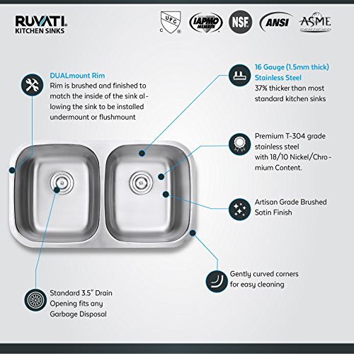 Ruvati RVM4300 Undermount 16 Gauge 32" Kitchen Sink Double Bowl, Stainless Steel