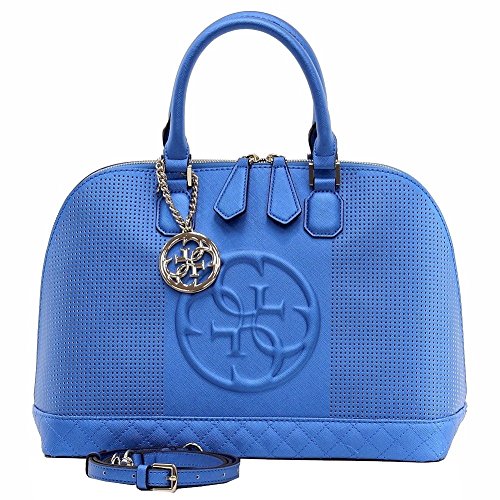 Guess Women's Korry Dome Metallic Blue Satchel Handbag