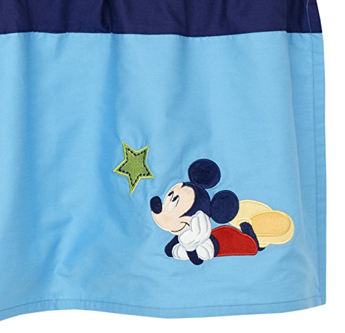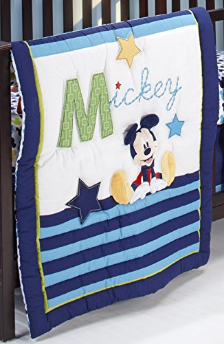-. Feature : Detailed embroidery and appliques, cotton rich fabrics, and bold shades of navy, blue, and green accented with crisp white - all these deluxe embellishments make Disney's My Friend Mickey 4pc Crib set extra special / Contains: Appliqued Comforter, crib sheet, dust ruffle, appliqued window valance / Measures: comforter 42 x 33"; dust ruffle 12" drop; window valance 60" x 14" sheets fit standard 28 x 52" crib mattress / Machine wash separately in cold water, gentle cycle; Use only non-chlorine bleach when needed; Tumble dry on low heat; Iron on low heat when neede; Do not dry clean