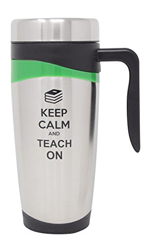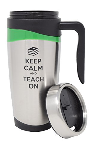 Suck Up Gifts Keep Calm and Teach On Stainless Steel 16 Oz Travel Tumbler Mug (Green)