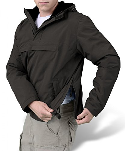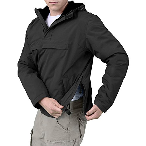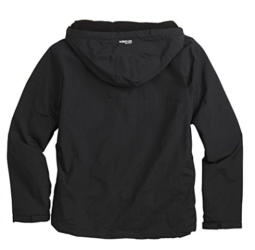 Lightweight weatherproof casual short jacket with soft warm fleece lining. This durable anorak style rain jacket has an outer layer made of breathable, windproof water repellent 100% nylon. It features a hood with a drawstring a high short front zip as well as 2 front pockets 1 large chest pocket (all pockets with zip closure). Moreover the jacket has adjustable cuffs with Velcro closure, toggle adjustment in hood waist, and side zippers for ease of movement. 0