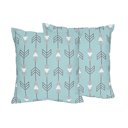 Sweet Jojo Designs 2-Piece Turquoise Blue and Gray Earth and Sky Arrow Print Decorative Accent Throw Pillows