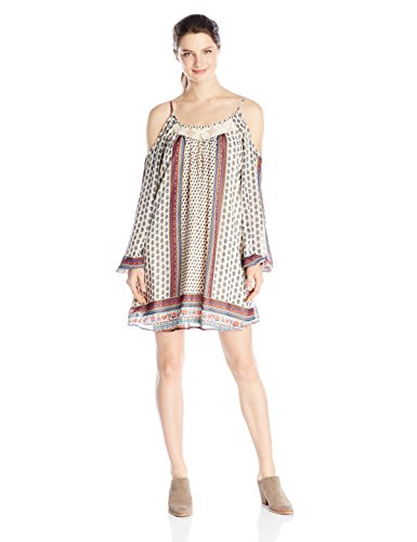 Product DescriptionCold shoulder dress in all over bohemian print with crochet detail at chest0