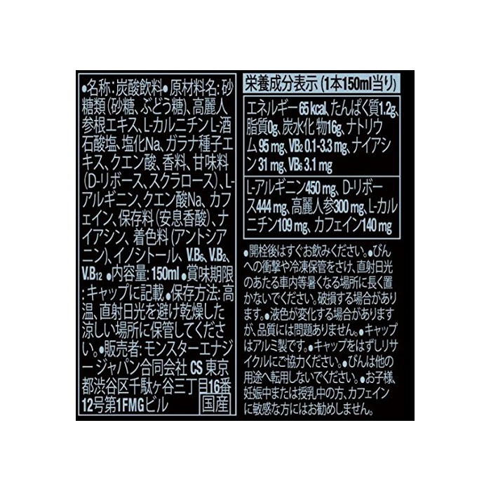 원본상품명: アサヒ料 モンスタエナジ M3 ワンウェイびん 150ml×24本