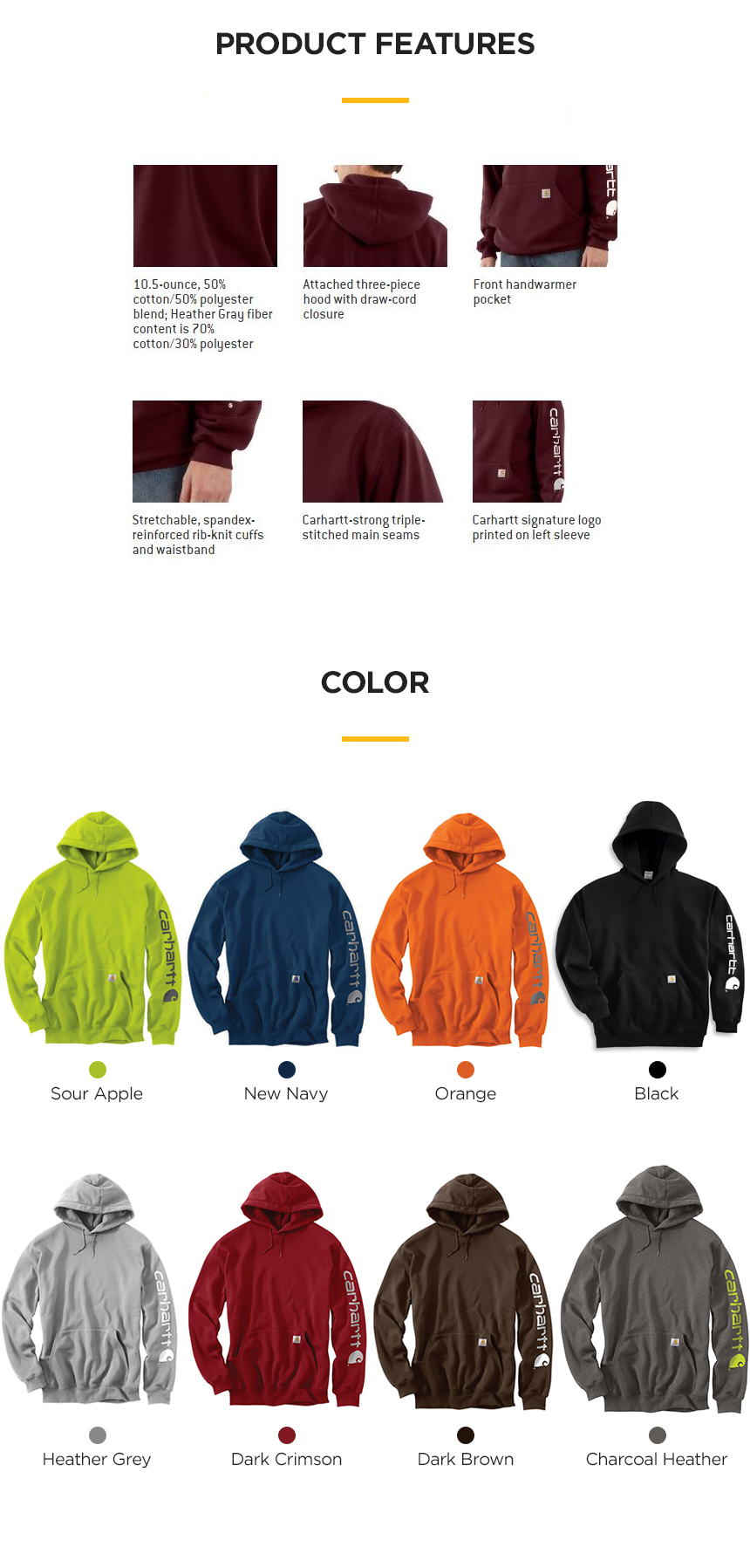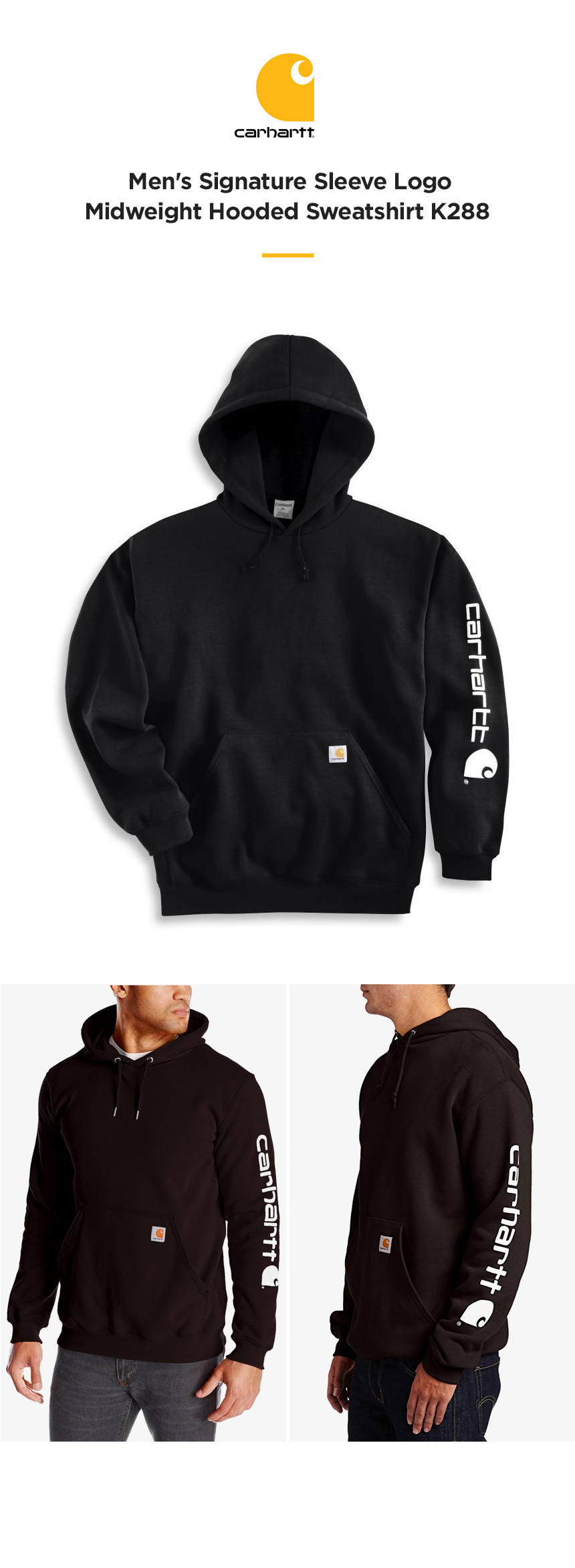 Carhartt Men's Signature Sleeve Logo Midweight Hooded Sweatshirt K288