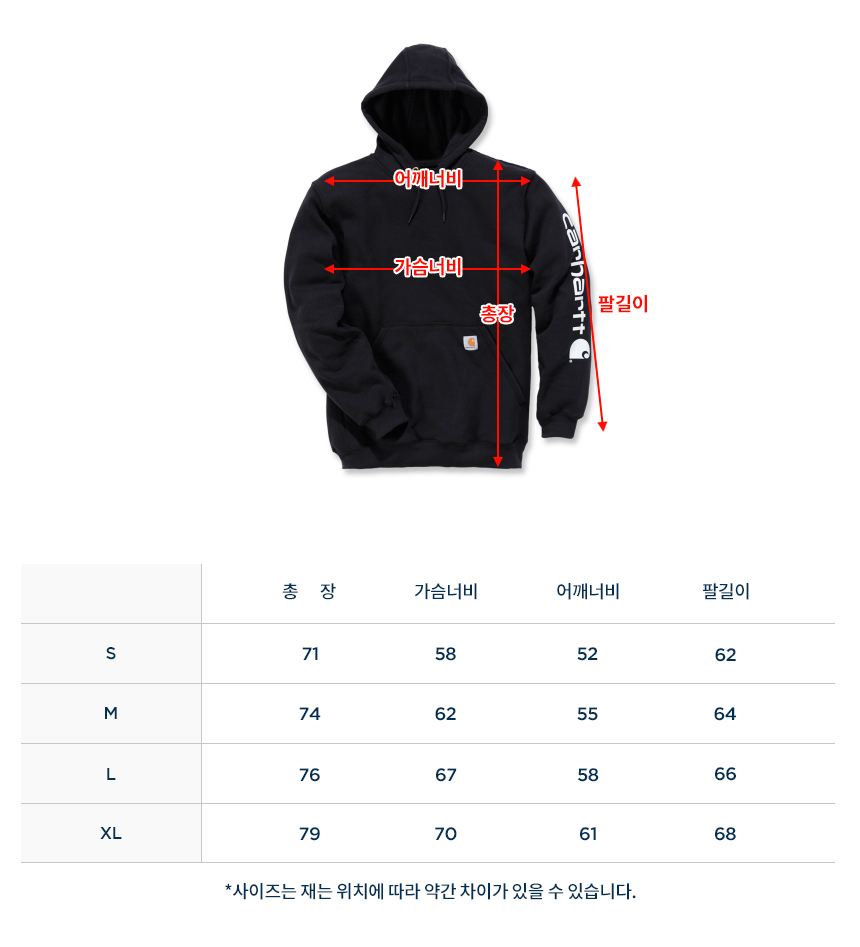 칼하트 미드웨이트 로고 슬리브 후드티 K288