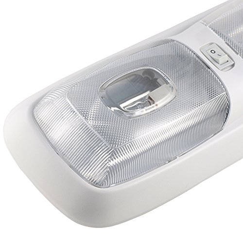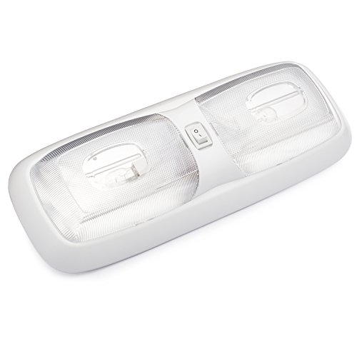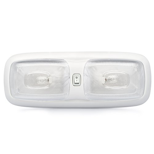 Lumitronics Euro Style 12V RV Interior Incandescent Double Dome Light w/Lens. White Base with On/Off Switch. Lighting Fixture Kit Includes Bulb. Replacement Light for RVs, Trailers, Campers, 5th Wheels. White Base, Clear Lens