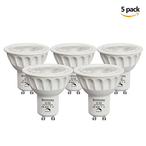 Bomcosy Dimmable GU10 6W LED Light Bulbs Warm White 3000K Spotlight 50 Watt Halogen Replacement, 540Lumens 35 Degree Focus Beam Angle 100-130V Pack of 5 Units