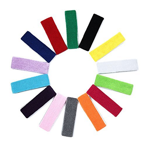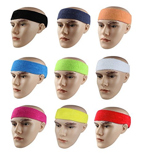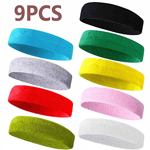 -. Title : 9PCS Kingree Yoga Headbands - Athletic Cotton Terry Cloth Head Sweatband for Sports, Elastic Headwear, Non Slip Headwrap, [9 Assorted Color (1)]