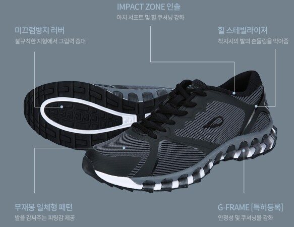 11자 워킹을 유도하고 안정성,쿠셔닝을 강화한 G-FRAME(특허) 상품
