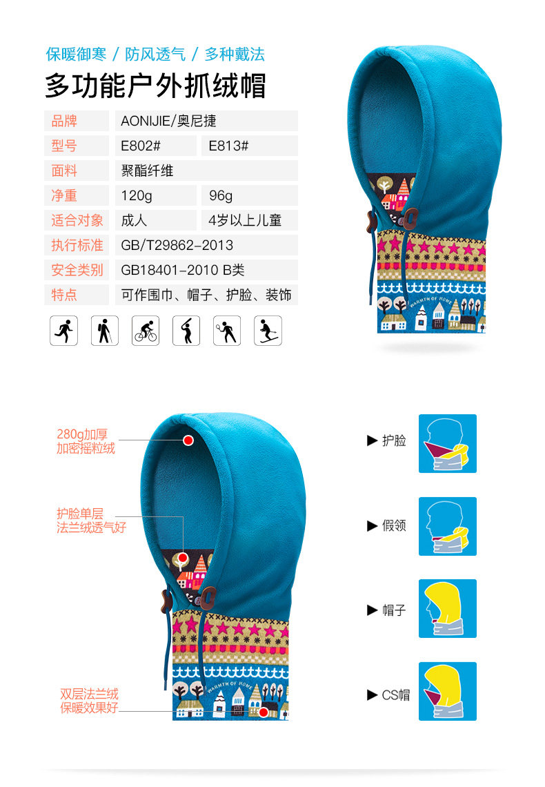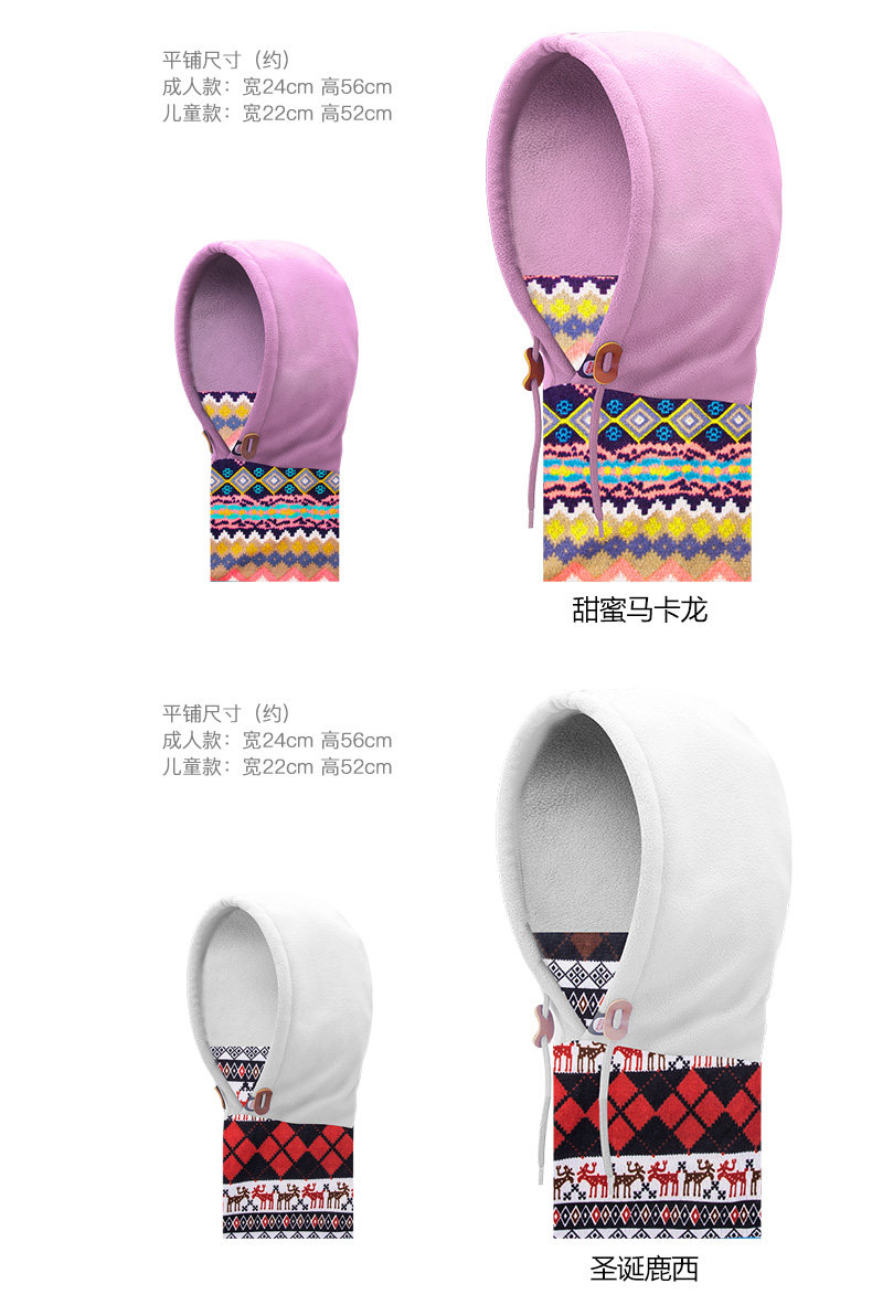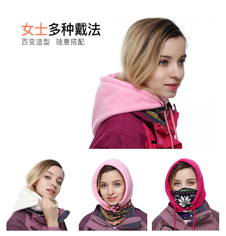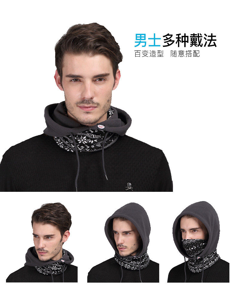 1, a variety of wearing law: hood, CS masks, bibs, hats, scarves, decorative hat collar;