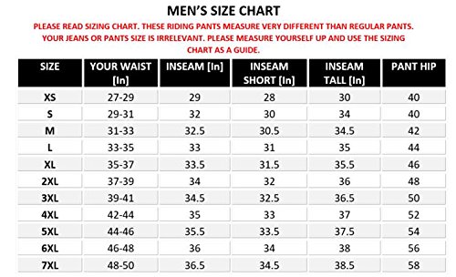 Studio : Xtreemgear Publisher : Xtreemgear Binding : Automotive Product Description These Pants are 100% waterproof, while offering excellent performance on cold weather rides. With class-leading CE-certified protection in strategic areas,CE rated knee armor can be adjusted via Velcro-slide mechanism and can be moved 4 inches up and down.These pants can adapt to all weather conditions and are fully compatible with the Xtreemgear cordura/Textile jackets and all other major brand Textile Jackets. Accordion-style expansion panels at the rear waist and above knees for increased flexibility. Anatomical, precurved design improves fit and comfort while riding Abrasion, scuff and tear resistant Cordura Polyester main shell construction. Waist connection zipper for secure integration with riding jackets. Large zippered cuff openings which allow pants to be worn over or under boots. These are riding pants and measure different than your regular jeans. So your regular jeans or pants measurement is totally irrelevant. Measure around your waist using a cloth tape measure and don't pull it tight. Pick your size by comparing this measurement to the size chart.Feel free to send us a message if you have any questions. 0