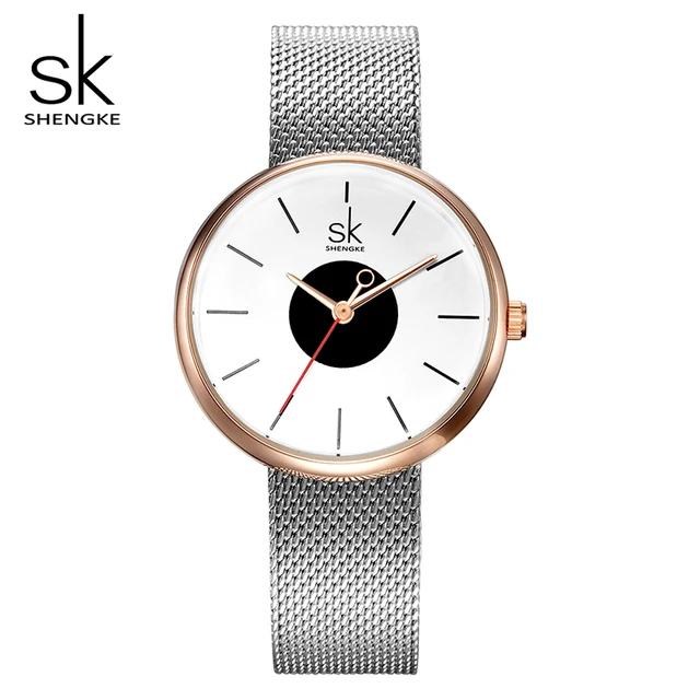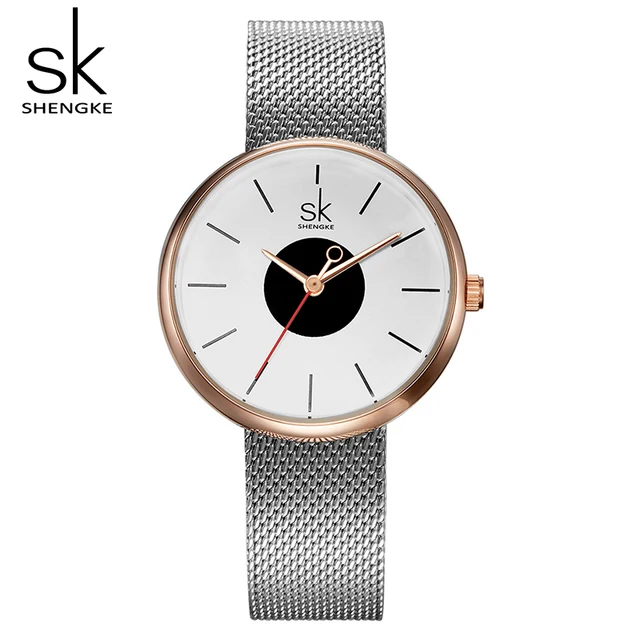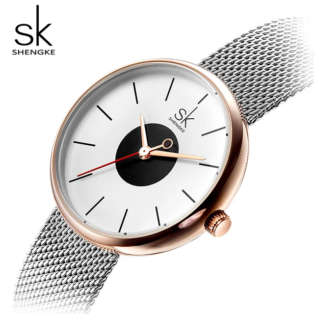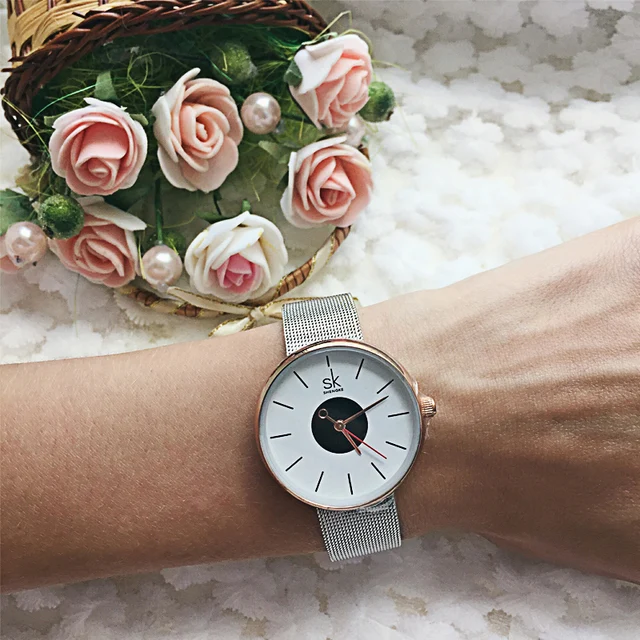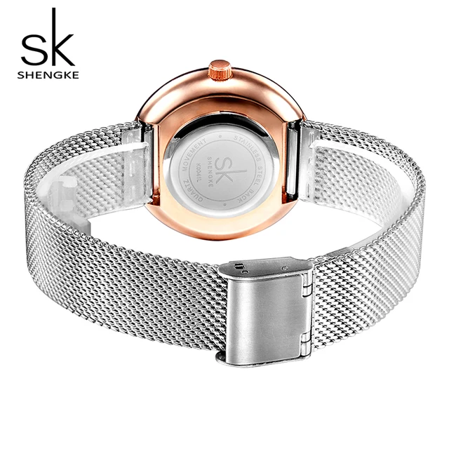 | [해외] SK 시계 여성 럭셔리 스테인레스 스틸 메쉬 밴드 팔찌 시계 여성 석영 손목 시계 실버 Relogio Feminino 2017 # K0041 |