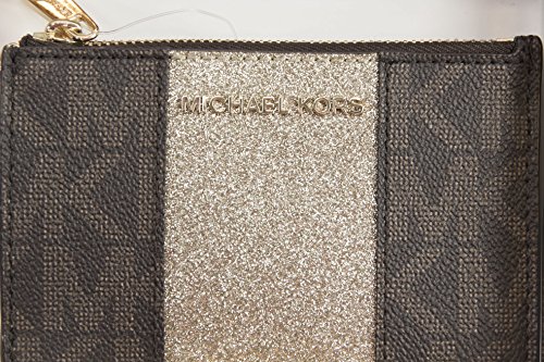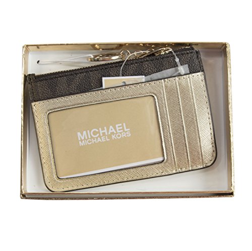 (MICHAEL Michael Kors)/Accessories/Wallets, Money Key Organizers/DIRECT FROM USA/MICHAEL KORS CENTER STRIPE SMALL TOP ZIP COIN POUCH ID MINI WALLET BROWN GOLD