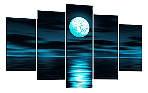 -. Feature : Oil Paintings Size: 10x16Inchx2, 8x20Inchx2, 8x24Inchx1 (25x40CMx2, 20x50CMx2, 20x60CMx1) / Christmas carnival hot selling,Why Hesitating?Chose it! Subject: Sea Blue Full Moon in the Night,5 panels / Top quality Hand-painted oil paintings. A perfect wall decoration for living room, bedroom, office, hotel, dining room, kitchen, bar etc. / Elaborate oil hand painted Paintings with Special Gallery wrapped and stretched with wooden frame on the back. Ready to hang. Edges are painted.Fecit drawing art work for perfect wall decoration.Commanly those art work hanging in living room, bedroom, office, hotel, dining room, kitchen, bar etc. / The one you received oil painting may be slightly different from the product image due to the different brand of monitors,and the lightings.Please refer to the painting's colors shown in the photo of oil painting. Materials/Milieu: Thick Canvas, high quality oil or Acrylic colors.