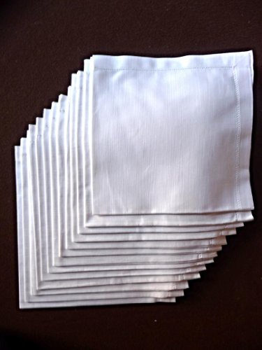 Hemstitch Dinner Napkins Set of 12 - White - One Dozen - 100% Egyptian Cotton - Elegant Cloth - Super Value Bulk 12 Pack