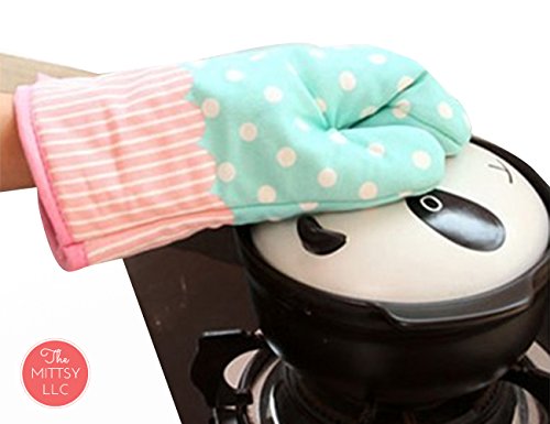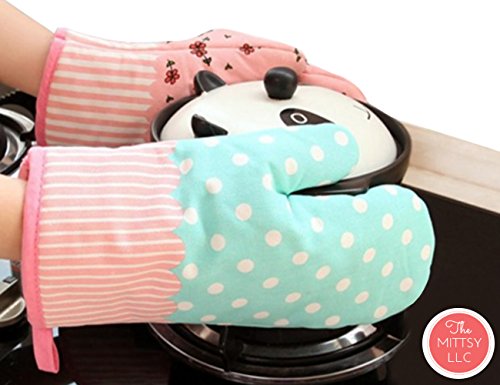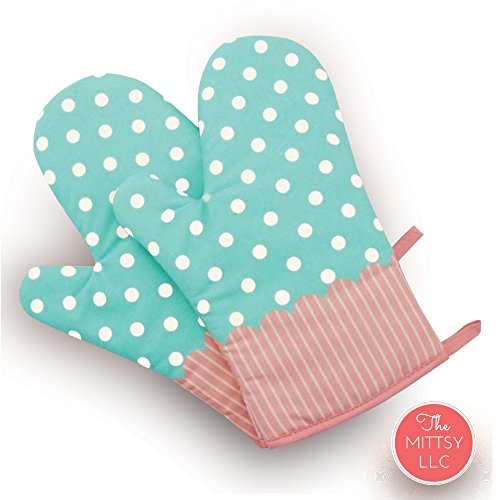 Set of Two Oven Mitts | Heat Resistant Cotton Kitchen Pot Holder [Decorative Kitchen Oven Mitt] Oven Glove | Kitchen Mitts (Dotted Blue)