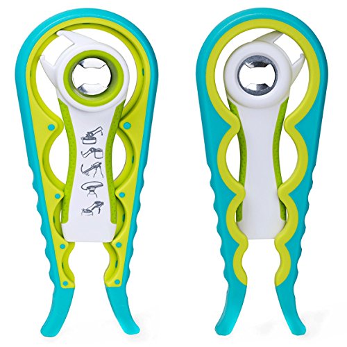 PREMIUM ALL-IN-ONE JAR OPENER AND BOTTLE OPENER FOR ANY SIZE JARS, CANS, BOTTLES, WINE, BEER AND SODA POPS - IDEAL FOR WEAK HANDS AND SENIORS WITH ARTHRITIS