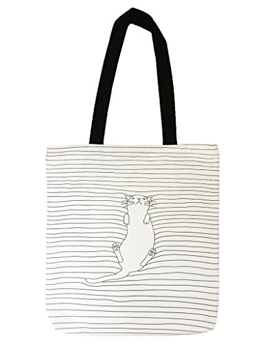 YeeTan Canvas Shoulder Bag with Zipper Women Girls White Cat Pattern, School Shopping Travel