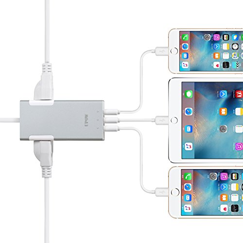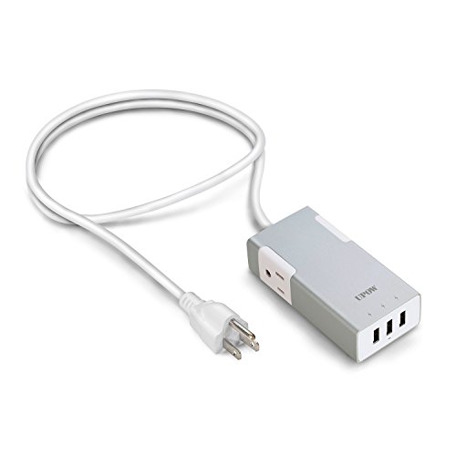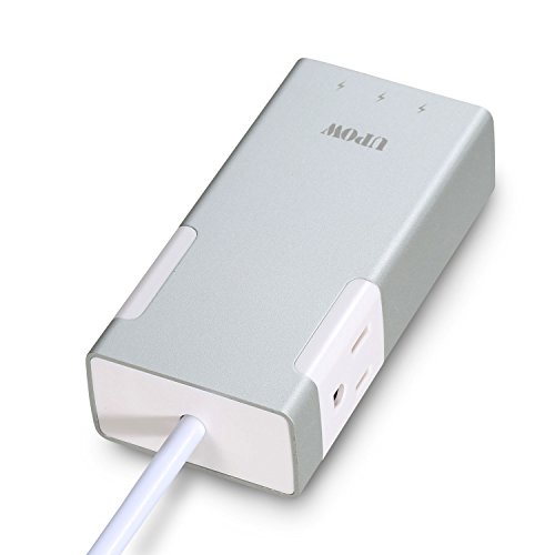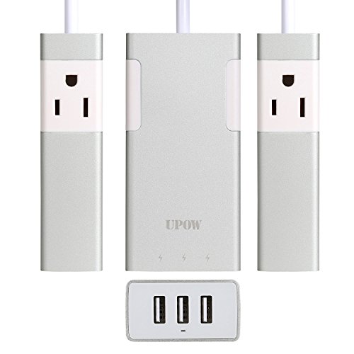 Upow 3-Port USB Travel Charger with 2 AC Outlets Power Strip for All Smart Device (Silver)