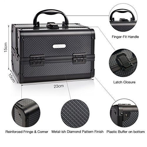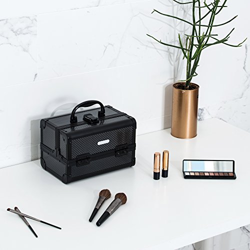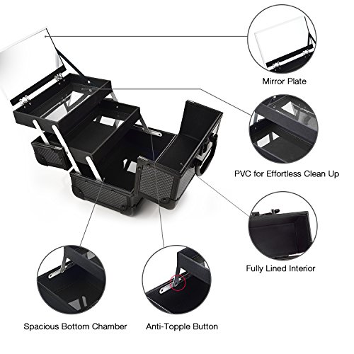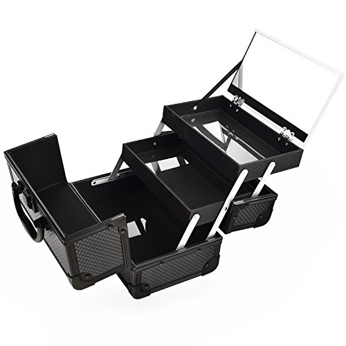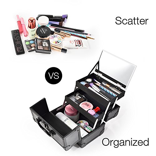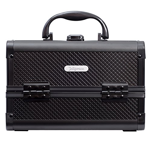 Joligrace 9" Makeup Case Portable Cosmetic Storage Box with Mirror & Trays for Home Bathroom and Travel Black