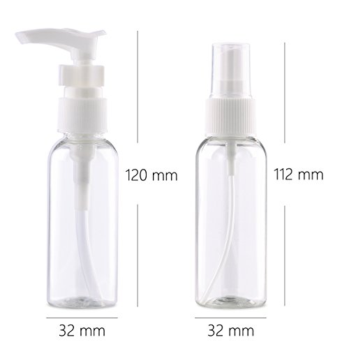 - MATERIAL SAFETY & HIGH QUALITY - 100% BPA free, colorless and tasteless ,safe and durable ,and can be reusable. Set of small bottles, ideal for shampoos, conditioners, hairspray, lotions, creams, etc.