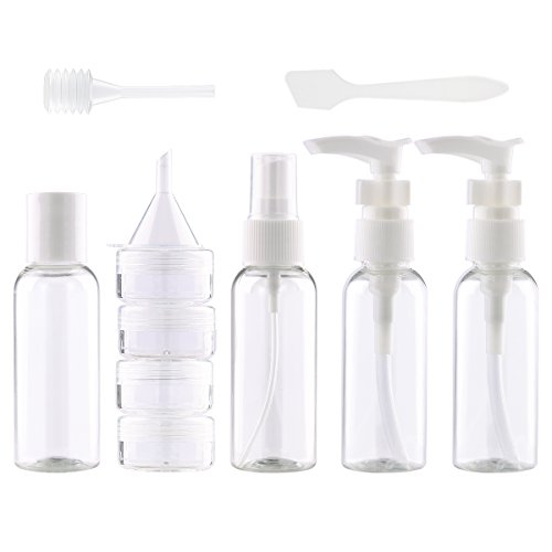 - EASY TO TRANSFER- A pipette, funnel and mini spatula are included in the kit, allowing you to transfer your liquids, lotions, gels and creams into the bottles and jars with great ease. TSA approved.