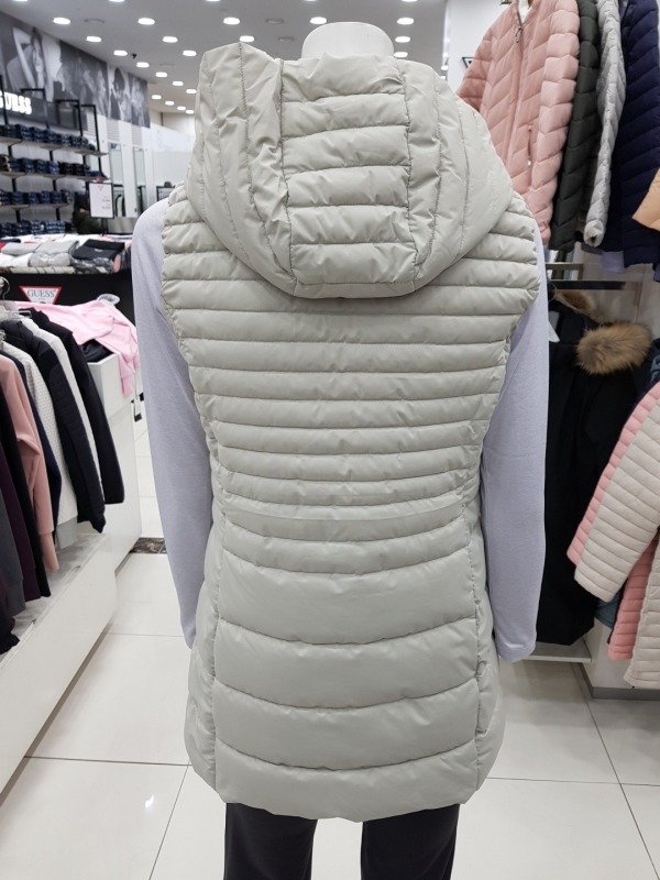 후드 탈부착이 가능한 LONG WELLON VEST.상하단의 변형 퀼팅 간격으로 슬림해 보이며 겨울에 내피용으로도 활용 가능한 제품. 엉덩이를 가리는 길이감과 허리를 잡아주는 핏감으로 체형의 단점을 보완해주는 효과가 있음.