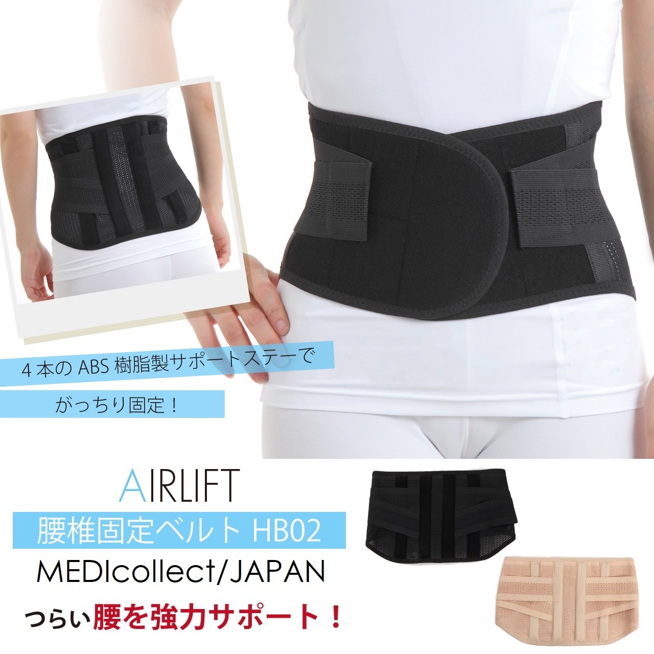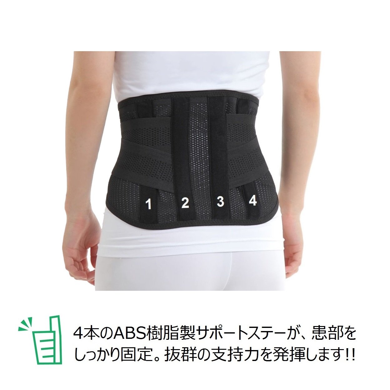 Four ABS resin support stays firmly fit to the waist!