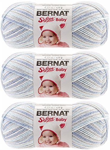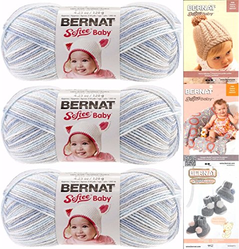 Bernat Softee Baby Yarn 3 Pack Bundle Includes 3 Patterns DK Light Worsted ( Blue Flannel ) 31129