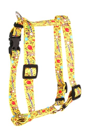 Studio : Yellow Dog Design Publisher : Yellow Dog Design Binding : Misc. Product Description Happy Birthday Small/Medium Step-In Harness. This Harness can be sized from 14-Inch to 20-Inch. The Step-In Harnesses are made in the U.S.A of 100-percent vibrant color-fast polyester with durable plastic slip locks and metal D-rings. 0