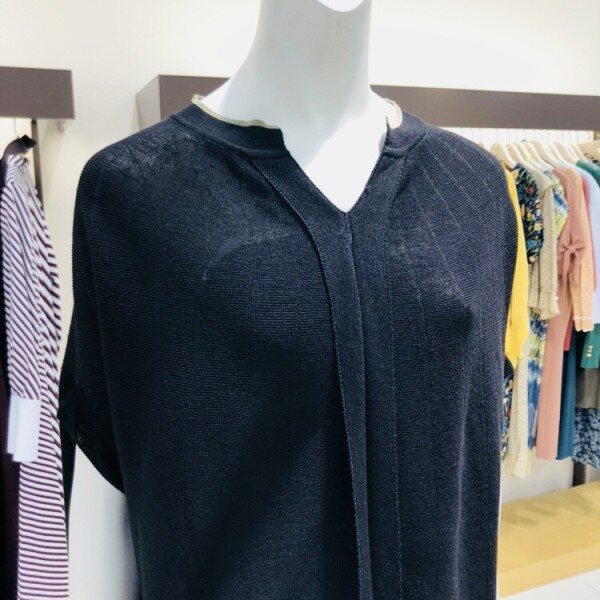 루즈핏 여름니트 입니다넥라인의 컬러와 브이넥 , 루즈한 핏으로 어느 하의에도 편하고 멋스럽게 연출 가능한 스타일입니다