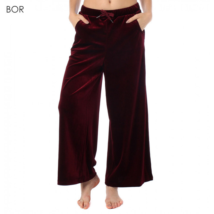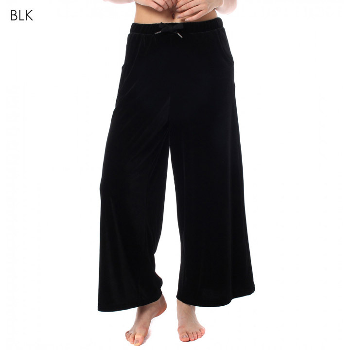 肌触りの優しいベロアとゴム仕様のウエストでストレスフリーな履き心地です。