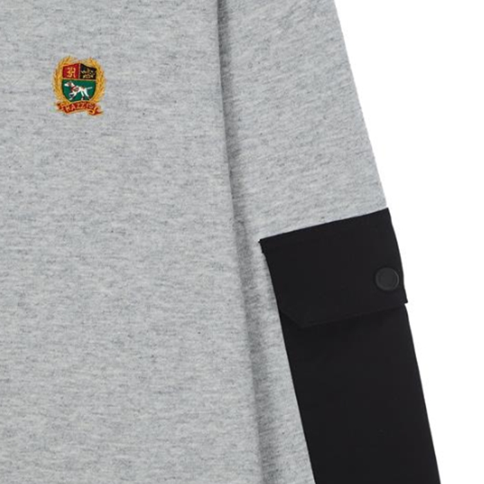 솔리드 컬러 바탕의 소매 부분으로 포인트 라인을 배색하여