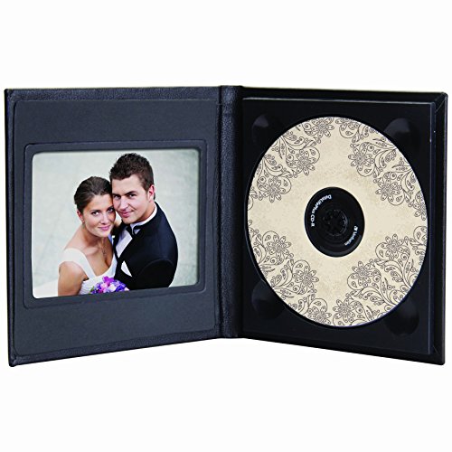 -. Feature : Holds one CD/DVD / Made out of high quality leatherette material / Comes packaged in a black presentation box / Mats for an optional inside cover horizontal or vertical 3.5" x 5" photo included / Perfect for giving clients digital files