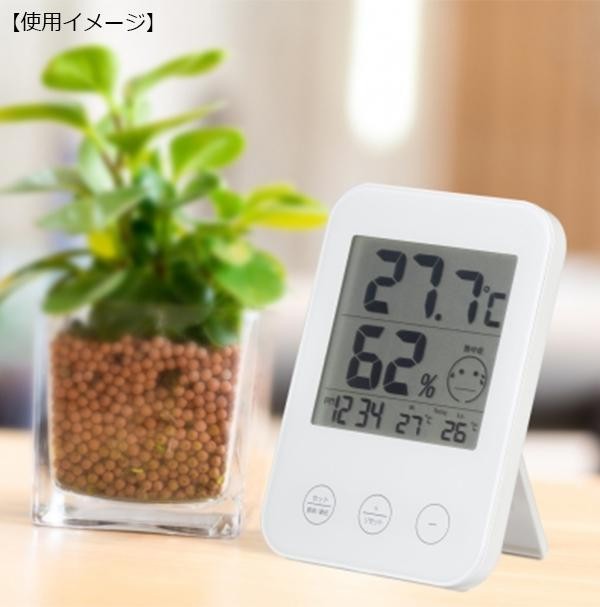 | 熱中症・インフルエンザの危険度がわかるデジタル温湿度計。 |