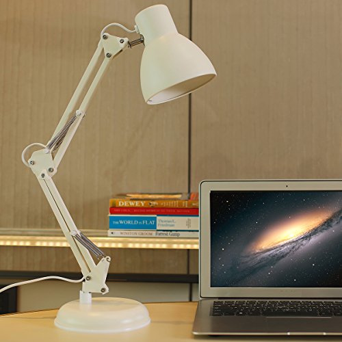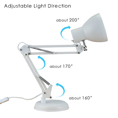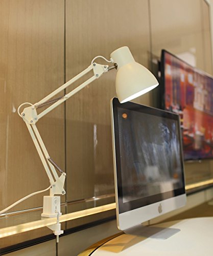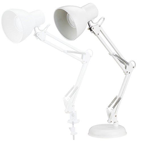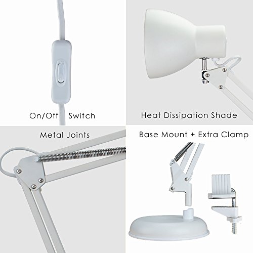 ToJane Swing Arm Lamp White,Architecture Desk Lamp with Base, Table Clip Mount Lamps for Office/Studio