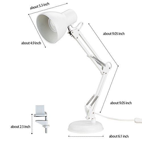 - ✔ What's included: 1 year warranty,ToJane metal based desk lamp( TG837 white),4*spring,1*extra C-clamp,1*7W LED bulb(extra free),user guide