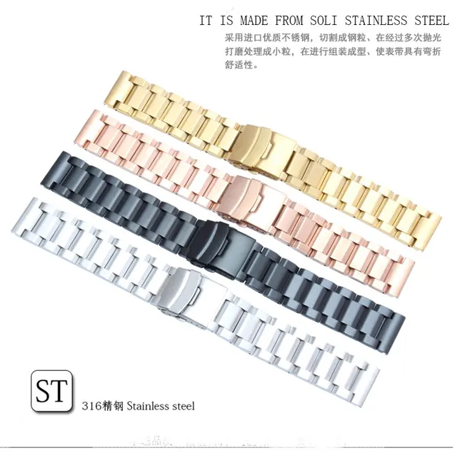 | [해외] 솔리드 스테인레스 스틸 시계 스트랩 ar 이중 보험 버클 남성 18/20/22/24 미리메터 블랙 실버 골든 로즈 황금 |