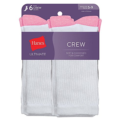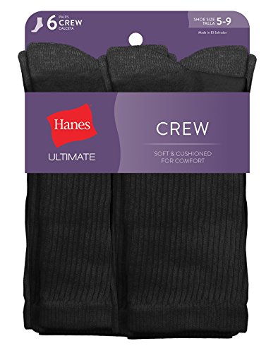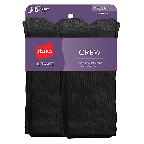 Studio : Hanes Women's Socks Publisher : Hanes Women's Socks Binding : Apparel Product Description Softness comes standard with this six-pair pack of women's ultimate crew socks by Hanes. Designed with comfort soft cushioning at the sole and a flat toe seam, each pair of socks in this multipack will have your feet feeling totally comfortable. Plus, stretch knit provides a stay-put fit. 0