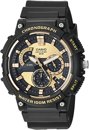 Brand, Seller, or Collection Name:Casio Model number:MCW-200H-9AVCF Part Number:MCW-200H-9AVCF Item Shape:Round Dial window material type:Glass Display Type:Analog Clasp:Buckle Case material:Resin Case diameter:5.2 centimeters Case Thickness:13 millimeters Band Material:Resin Band length:Men's Standard Band width:20 millimeters Band Color:Black Dial color:Gold Bezel material:Resin Bezel function:Stationary Calendar:Date Special features:N/A Item weight:2.08 Ounces Movement:Quartz Water resistant depth:330 Feet