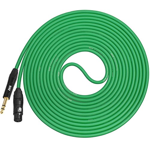 LyxPro 1/4” TRS to XLR Female Microphone Cable - 15 Ft - Green - for Professional Microphones and Devices