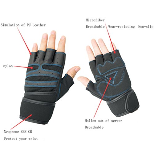 -. Feature : Fitness Gloves With a Soft but Strong Wrist Support,It is Designed to Protect Your Wrist and Avoid Injury during Powerlifting / Provide Different Size for Men and Women,Get the Suitable size Base on the Listing Images Information / Best for Weight Lifting, Crossfit Training, Gym, Powerlifting and Other Heavy Fitness Workouts / Made of Breathable and Wear-resisting Material(Simulation of PU leather,nylon,neoprene SBR CR,Microfiber,Hollow Out of Screen),The Appearance of the Air Holes and Cool Design / 1 Pair Weightlifting Gloves-with 1 Year Free No-Hassle Quality Guarantee
