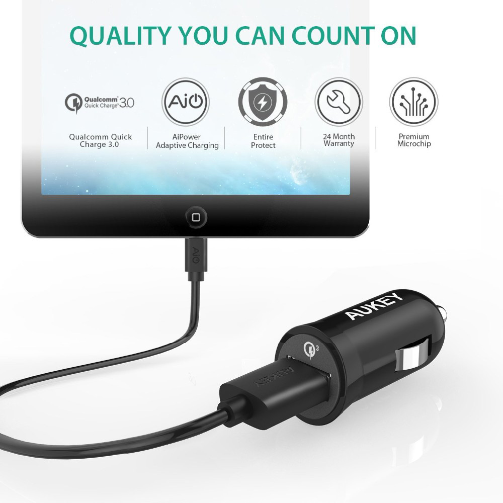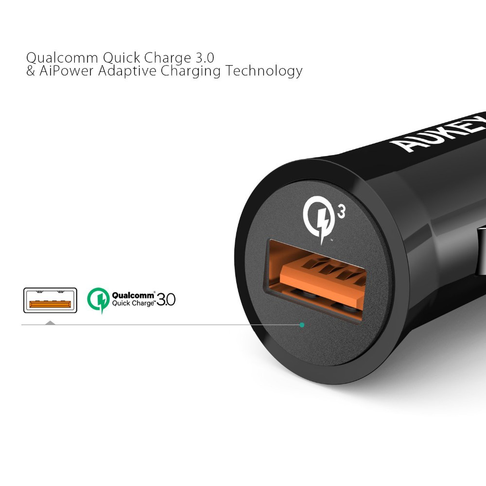 • Thanks to Qualcomm Quick Charge 3.0 Technology, AUKEY car chargers charge compatible devices four times faster than a standard charger.