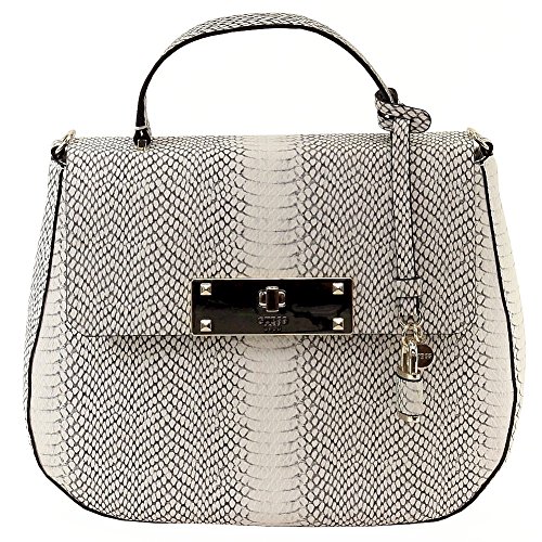 -. Brand : GUESS -. ClothingSize : 9 H x 11 W x 2.75 D Inch -. Color : Multi-color -. Department : womens -. Feature : Python-embossed P.R.Inted faux-leather exterior. Pale gold-tone hardware. / Front plaque with stud and turn-lock detail. Front logo emblem. Removable faux leather-covered padlock charm. Fold-over flap with snap-button closures. / Exterior back zipper pocket. Interior features zipper wall pocket plus three multipurpose pockets. / Single top handle with 3" drop. Removable, adjustable chain-trim cross-body strap with 22.75" drop. / Leopard-P.R.Int lining -. Label : GUESS -. Manufacturer : GUESS -. Model : PG634018 -. MPN : PG634018 -. NumberOfItems : 1 -. PackageQuantity : 1 -. PartNumber : PG634018 -. ProductGroup : Shoes -. ProductTypeName : HANDBAG -. Publisher : GUESS -. Size : 9 H x 11 W x 2.75 D Inch -. Studio : GUESS -. Title : GUESS Kyra Python-P.R.Int Saddle Bag